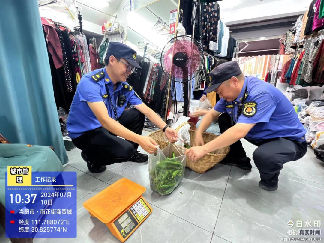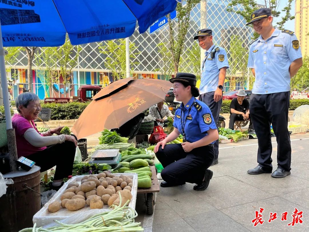 当阳市城市管理综合执法大队的专项整治行动中,一位占道经营的卖菜阿姨情绪激动,队员们询问得知,她的家境困难,想挣一些钱补贴家用。执法队员安抚其情绪后帮助她将剩下的菜全数卖完,并将所得钱款转交。今年以来,当阳市城市管理执法局变被动服务为主动服务,疏堵结合,设置便民疏导点11处,可容纳流动摊贩550余个,保障“烟火气”与市容秩序并存。