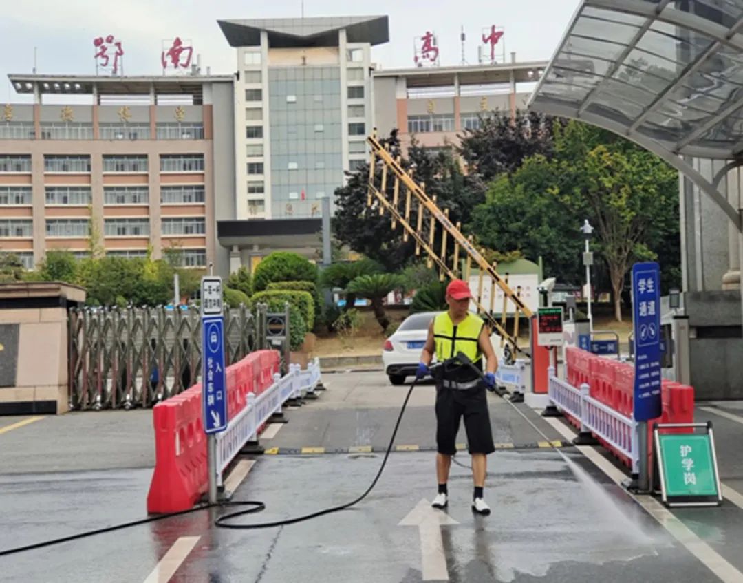 为营造干净整洁的校园周边环境,武汉市汉阳环卫集团错峰开展清洗作业,利用开学季前暑假期间人流量少的空档,采用“人机结合”的方式,对学校周边“强力度”清洗,主次干道全面清洗,人行道及公共设施、城市家具精细化人工清洗。