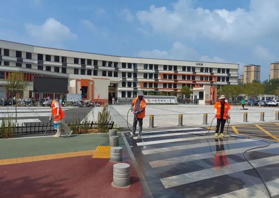 仙桃市环卫局小型高压冲洗车结合人工作业对周边道路及公共设施进行清洗,确保学校周边环境卫生干净整洁,为广大师生营造出更好的学习生活环境。