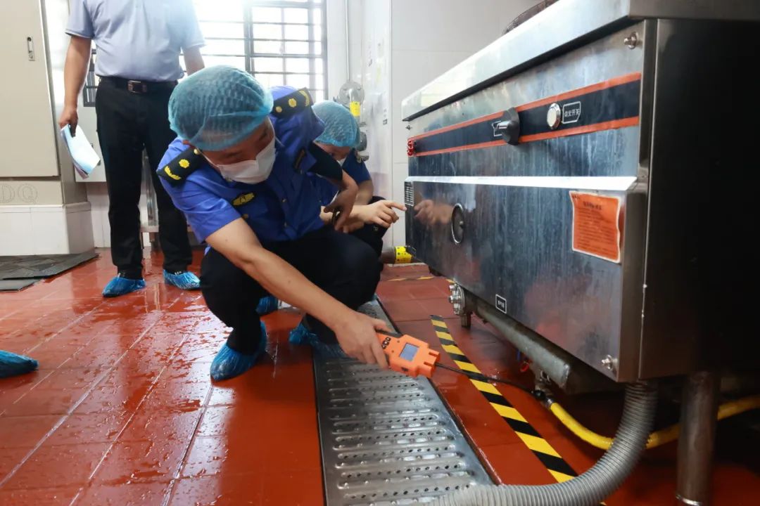 武汉市武昌城管为了确保学生们在校园内外的用餐环境安全,联合区教育、消防、市场监管及街道等部门对辖区中小学开展了燃气安全隐患检查。