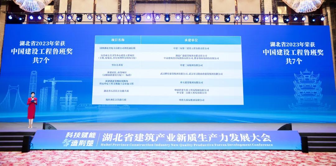 大会观看了《何以建造》宣传片,发布了《2023年度湖北建筑业发展报告》,通报了湖北省2023年度鲁班奖、国优奖、詹天佑奖、华夏奖项目,汉芯公馆智能建造示范项目成果和“双智杯”湖北省智能建造机器人应用技术大赛获奖作品,集中展示了湖北智能建造在勘察设计、生产施工、运营维护全产业链的国之重器、核心科技和创新项目。