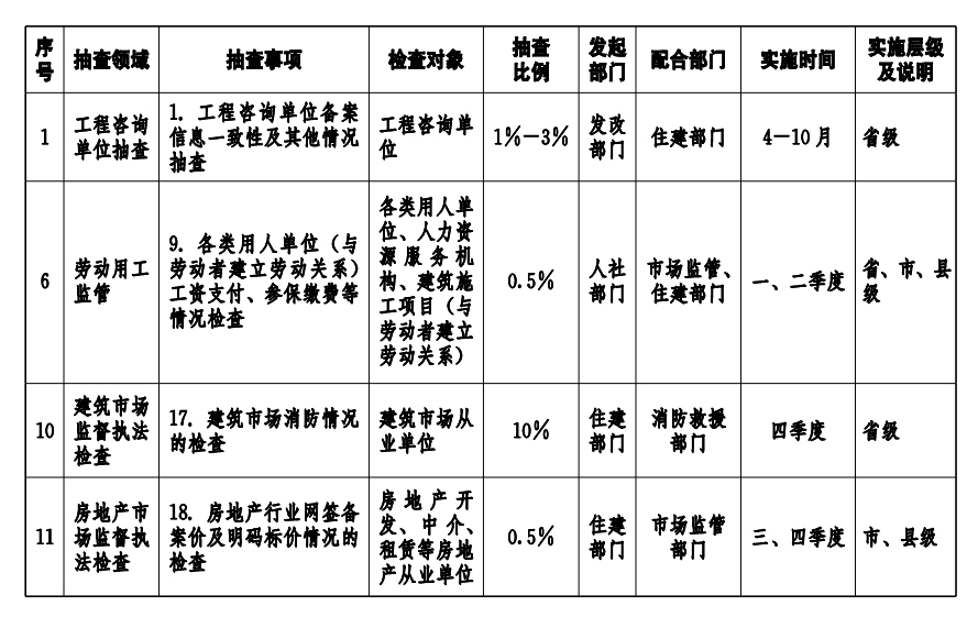 湖北省市场监管领域2021年度部门联合双随机抽查工作计划表(住建部门部分)