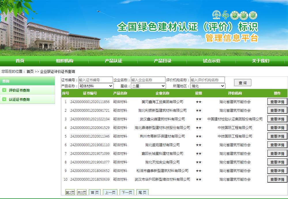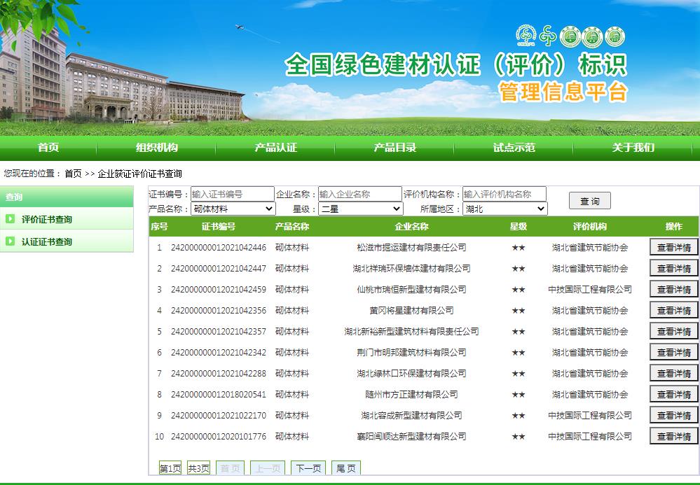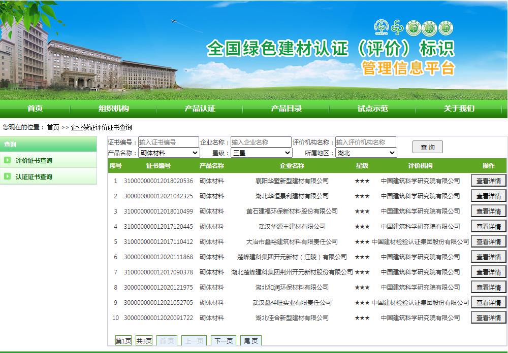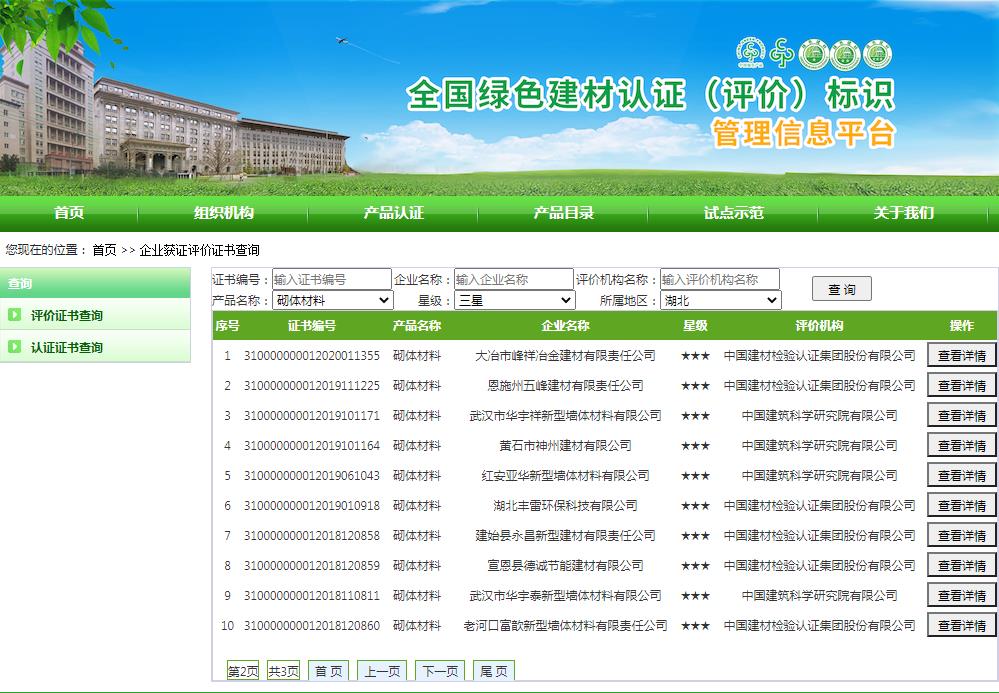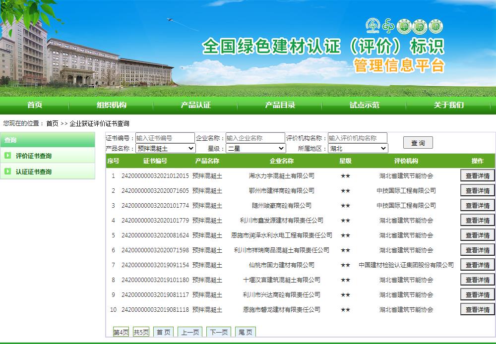 湖北省绿色建材评价标识企业名录(截至2022年4月19日)