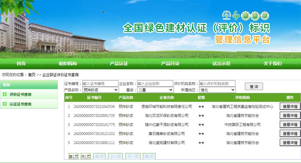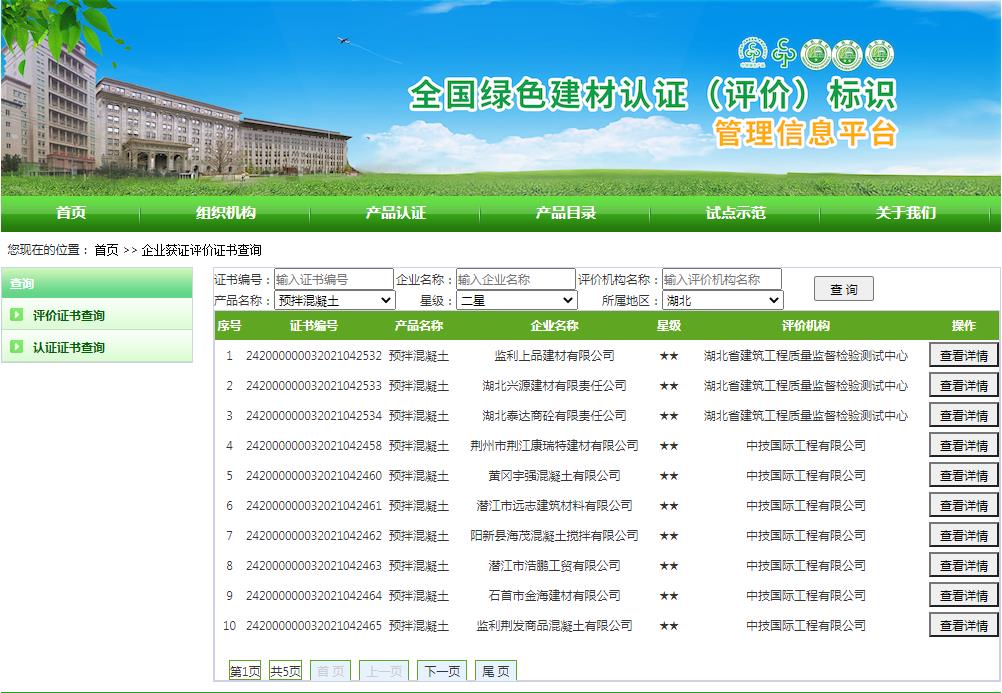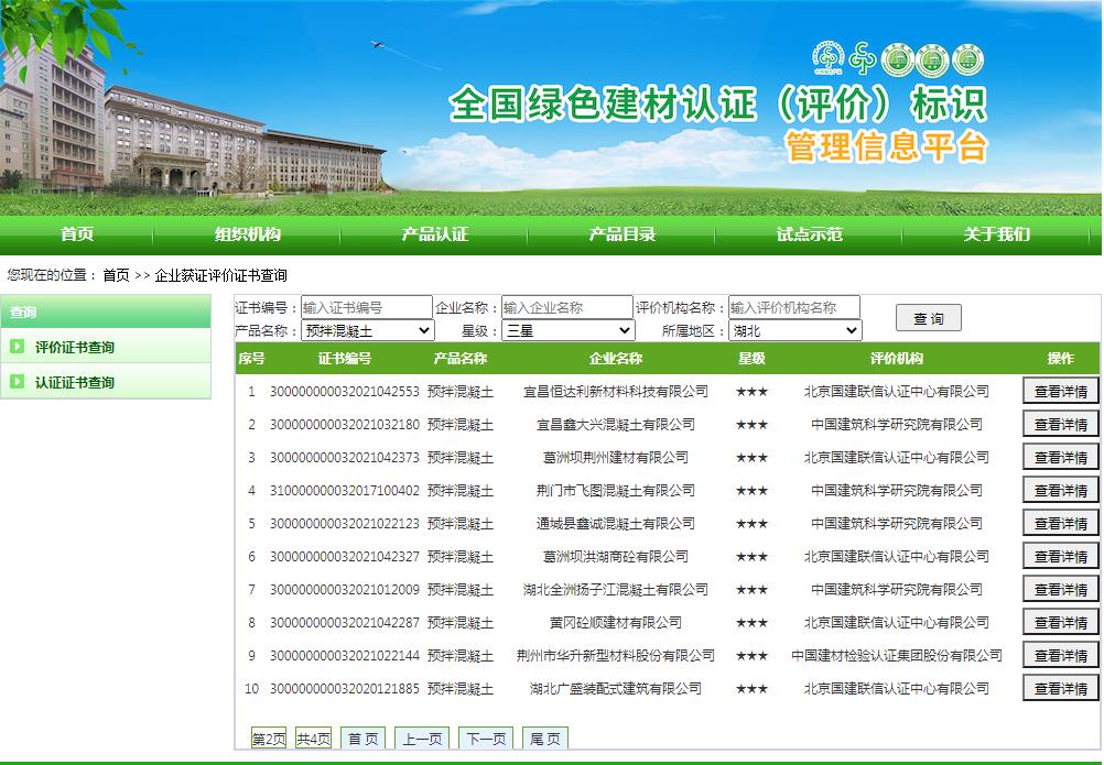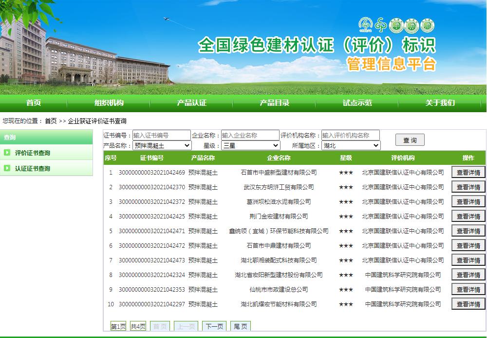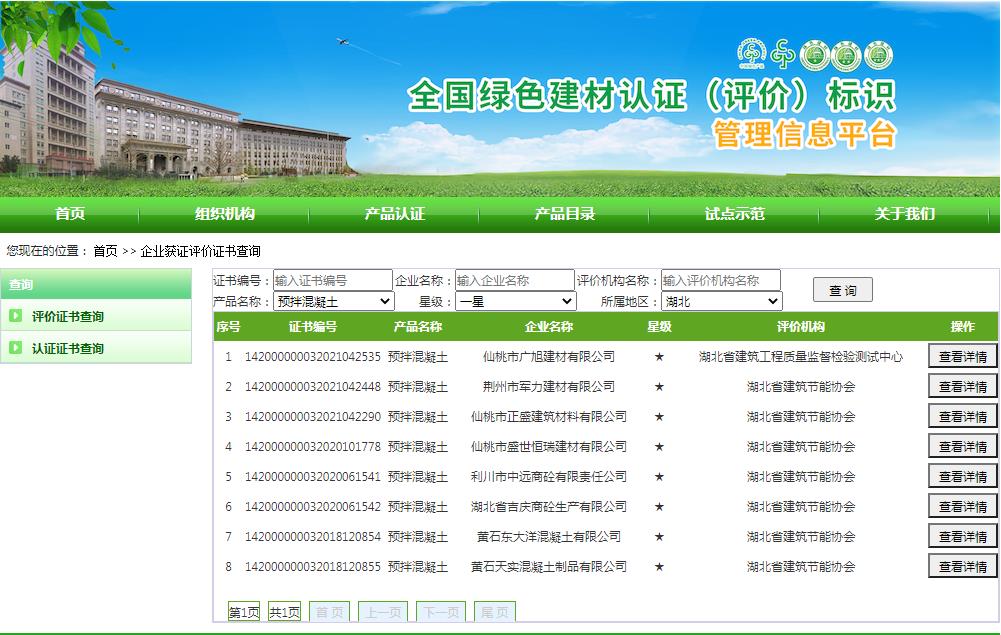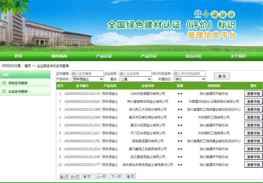 湖北省绿色建材评价标识企业名录(截至2022年4月19日)