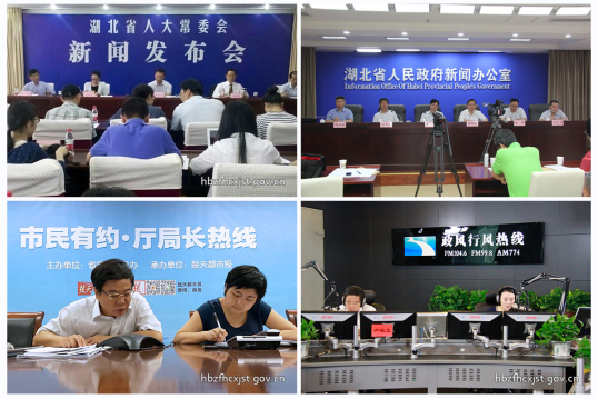 (四)加大政策解读回应力度。2015年5月28日,省人大常委会召开新闻发布会,我厅分管领导就《湖北省城镇供水条例》的立法背景、内容亮点、贯彻实施等问题回答了记者提问。7月16日,联合省信访局、省公安厅等部门召开通过法定途径分类处理信访投诉请求新闻通气会,公布了住建领域分类处理信访投诉请求渠道和方法。10月20日,举行《湖北省物业管理条例》立法听证会,邀请了人民网、荆楚网、湖北日报、湖北经视等7家媒体参加。12月22日,我厅分管领导在“湖北环保世纪行”第四次记者会上通报了全省建筑施工扬尘治理相关情况,并就相关工作成效、渣土运输监管、监督执法等问题回答了记者提问。