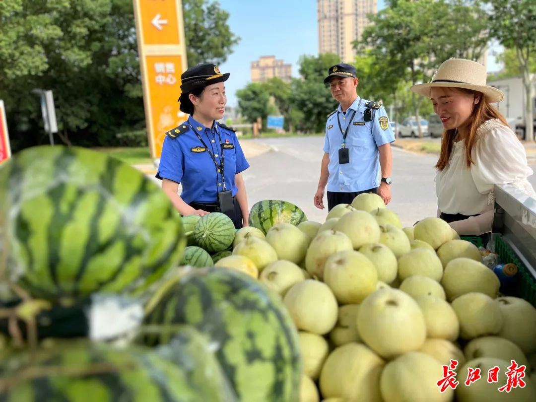 荆州市城管执法女子中队用微笑服务、柔性执法、文明监管,耐心劝导规范经营和劝离流动商贩。