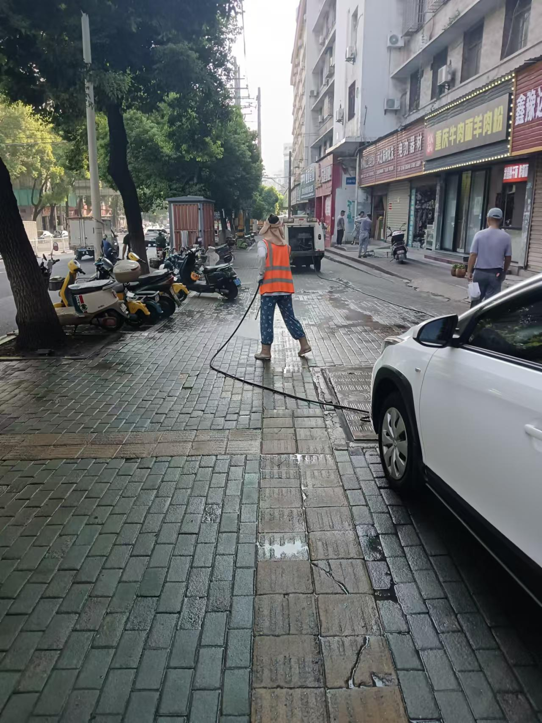 仙桃市环卫局小型高压冲洗车结合人工作业对周边道路及公共设施进行清洗,确保学校周边环境卫生干净整洁,为广大师生营造出更好的学习生活环境。