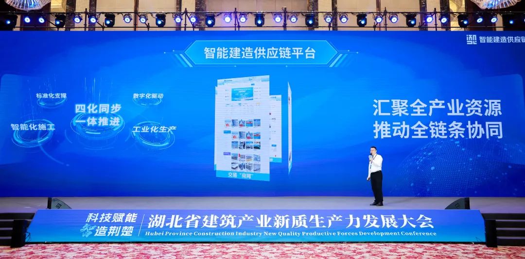 加快发展新质生产力,是习近平总书记立足推进中国式现代化全局作出的重大战略部署,建筑业作为国民经济的传统支柱型产业,是发展“新质生产力”的重要场景。刘丰雷在欢迎辞中指出,近年来,湖北住建坚持标准化、工厂化、数字化、智能化“四化”同步推进智能建造,“三链融合”引领建筑业转型升级;坚持标准化设计、工厂化生产、装配式施工、信息化管理、智能化应用、一体化装修,推动装配式建筑加快扩面提质;坚持以供应链思维构建现代建筑产业体系,搭建住房供应链,摸清需求,实现以需定供、以需定建;搭建智能建造供应链,用BIM融通设计、建造、运维三环节,实现国产化替代,破解世界性难题;搭建绿色建材供应链,从PC厂数字驱动,到建材厂以需定产。通过搭建三个平台,打通从建材生产到规划、设计、PC制造、现场吊装、智能建造、后期运营全产业链全生命周期,实现基于BIM的数字驱动、以需定供、个性定制、柔性生产。接下来,将用贯穿全生命周期的新质生产力,全力推进建筑行业“焕新”、建筑企业“增智”、建筑工人“提质”,让新质生产力为擦亮“湖北建造”品牌提供持续动力。