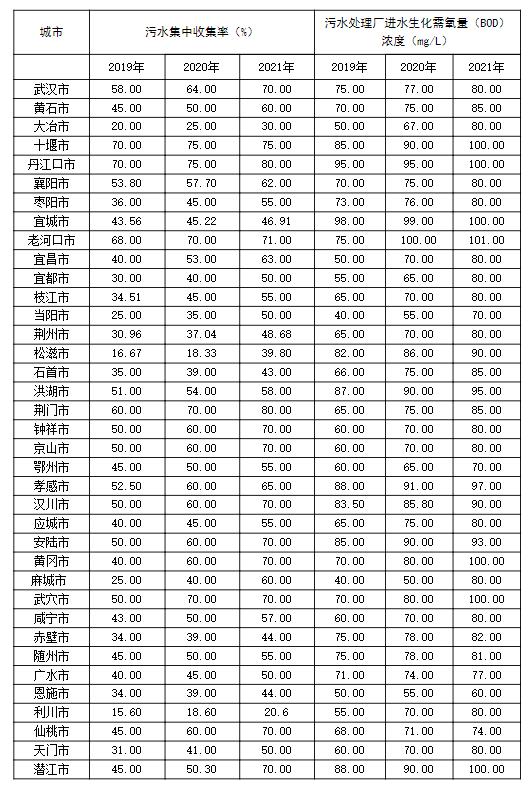 湖北省城镇污水处理提质增效行动目标