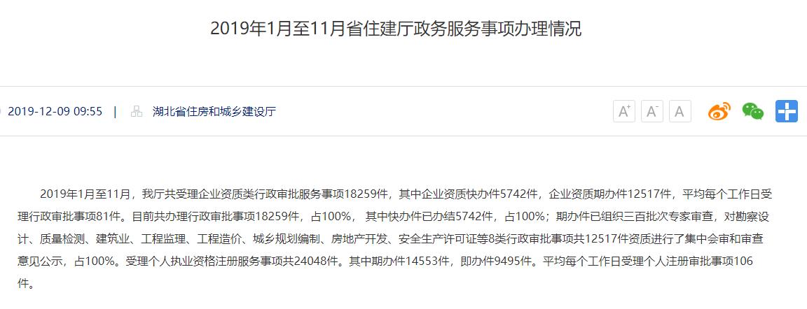 2019年,我厅公开规范性文件(含有文号的政策性文件)588件,处理行政许可事项116071件、行政处罚事项53件、其他对外管理服务事项49652件。共组织346批次专家审查,对勘察设计、质量检测、建筑业、工程监理、工程造价、城乡规划编制、房地产开发、安全生产许可证等8类行政审批事项共13963件资质进行了集中会审,审查意见结果信息全部在2个工作内公开通过做爱漫画 网站公开。